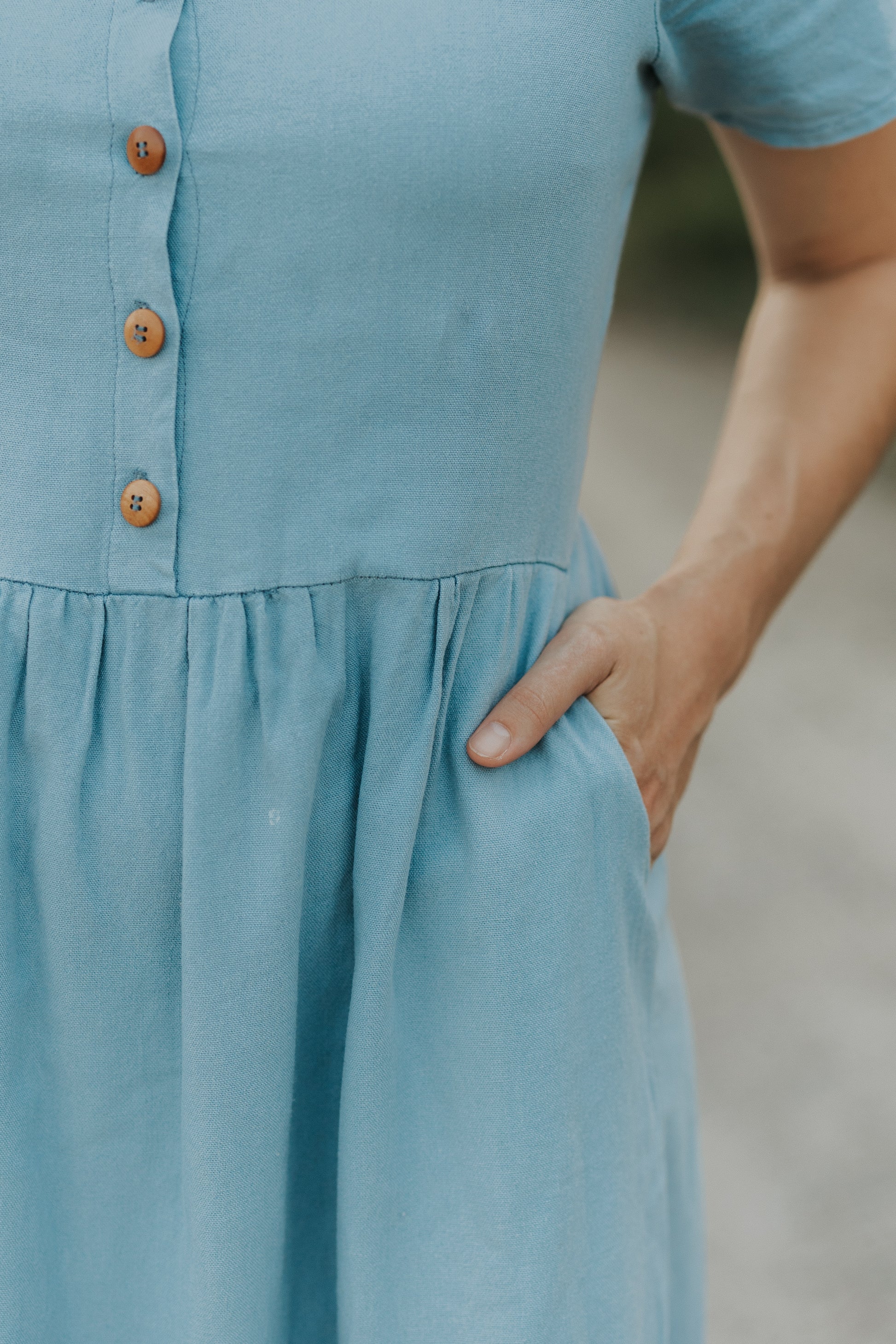 The Ava dress is one of a kind, with its functional buttons and flowy feminine design. Created with mothers in mind, this dress is nursing friendly, very comfortable and versatile.