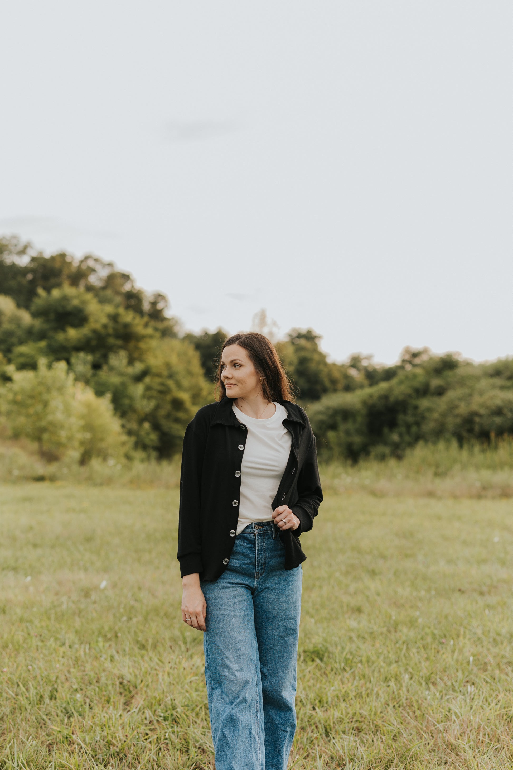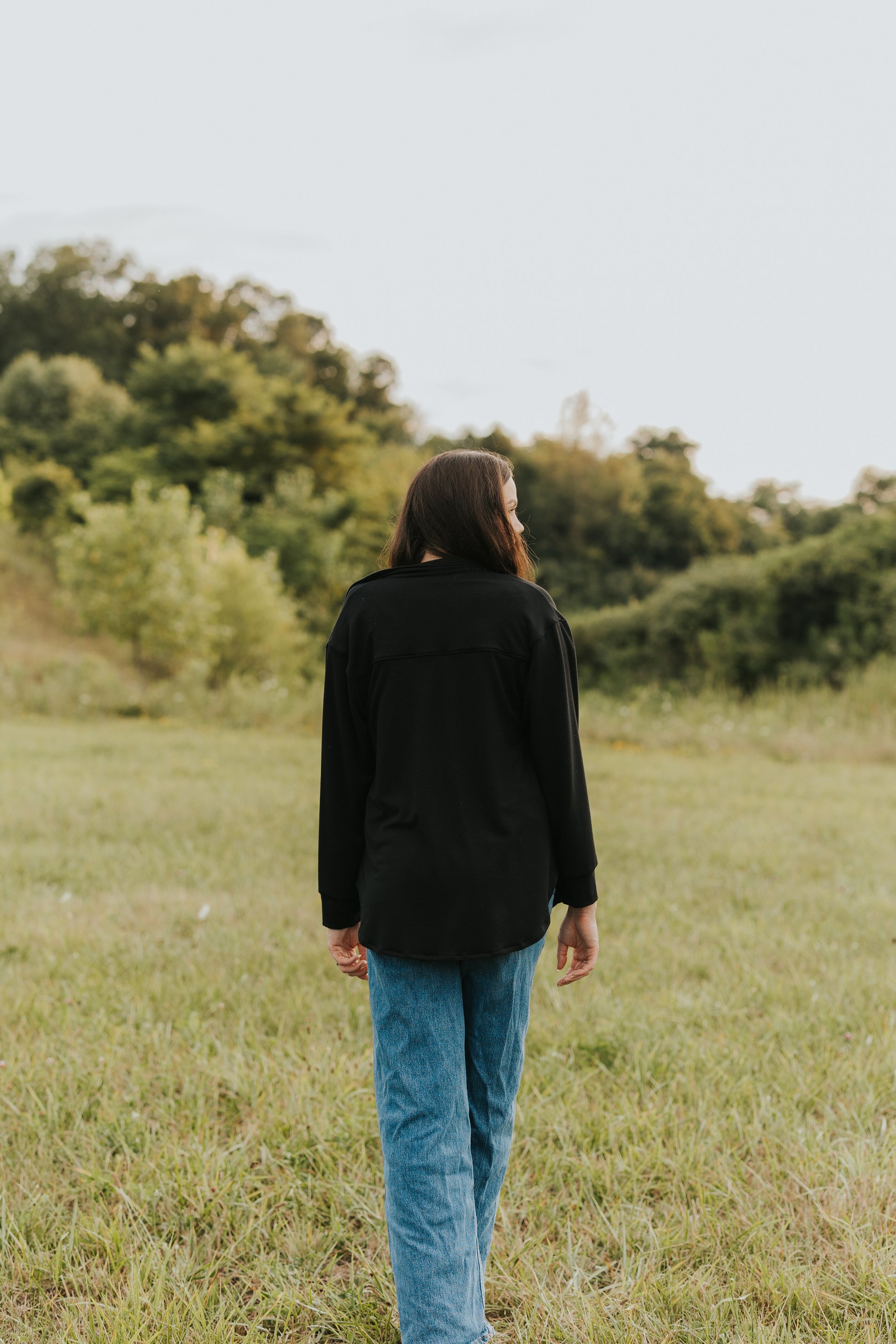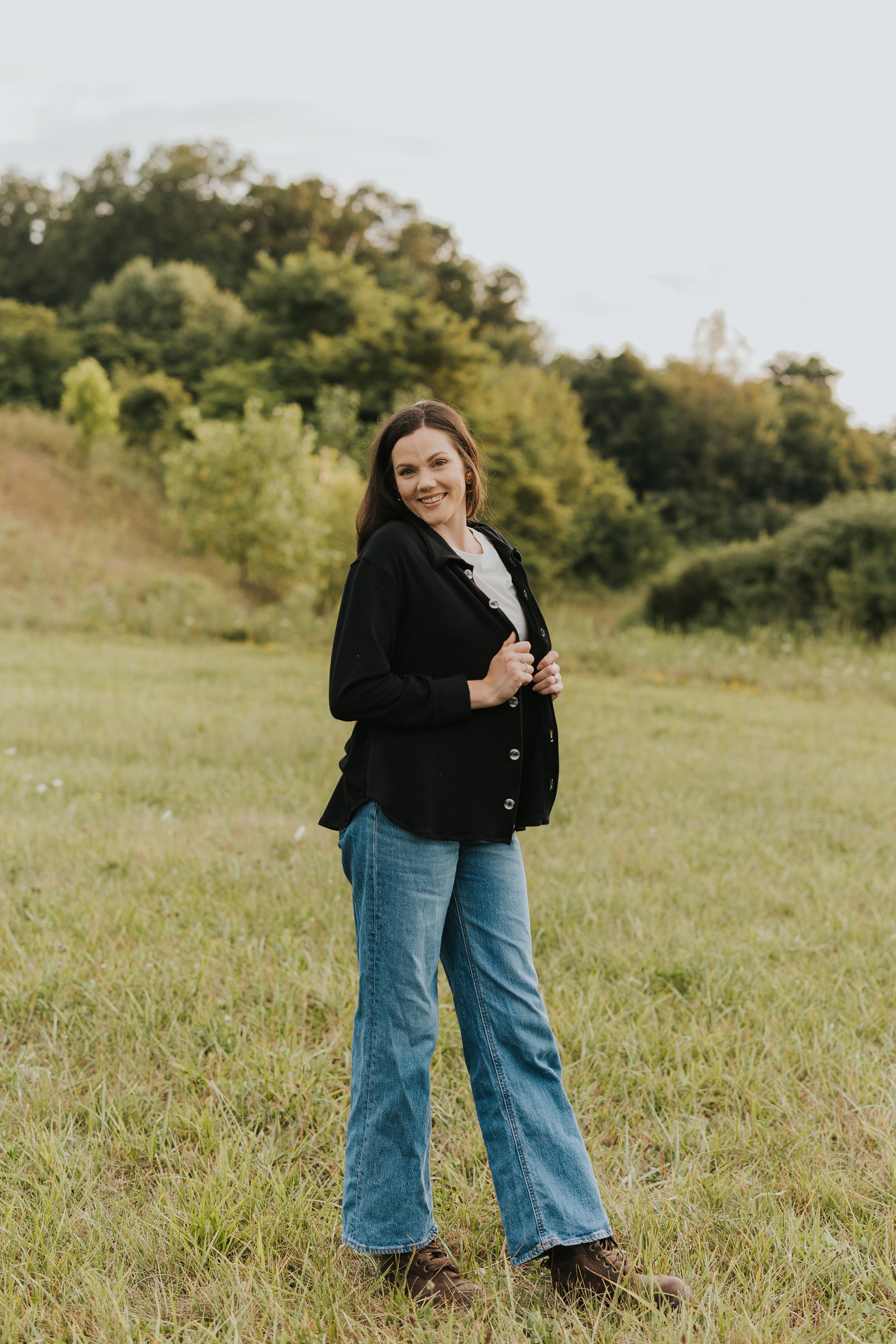 The Beatrix Shacket is the perfect combination of a shirt and a jacket, providing a versatile and lightweight option for your wardrobe. Made with soft black french terry material, this shacket has beautiful buttons and cuff sleeves for added detail. Stay comfortable in all seasons with the Beatrix Shacket.