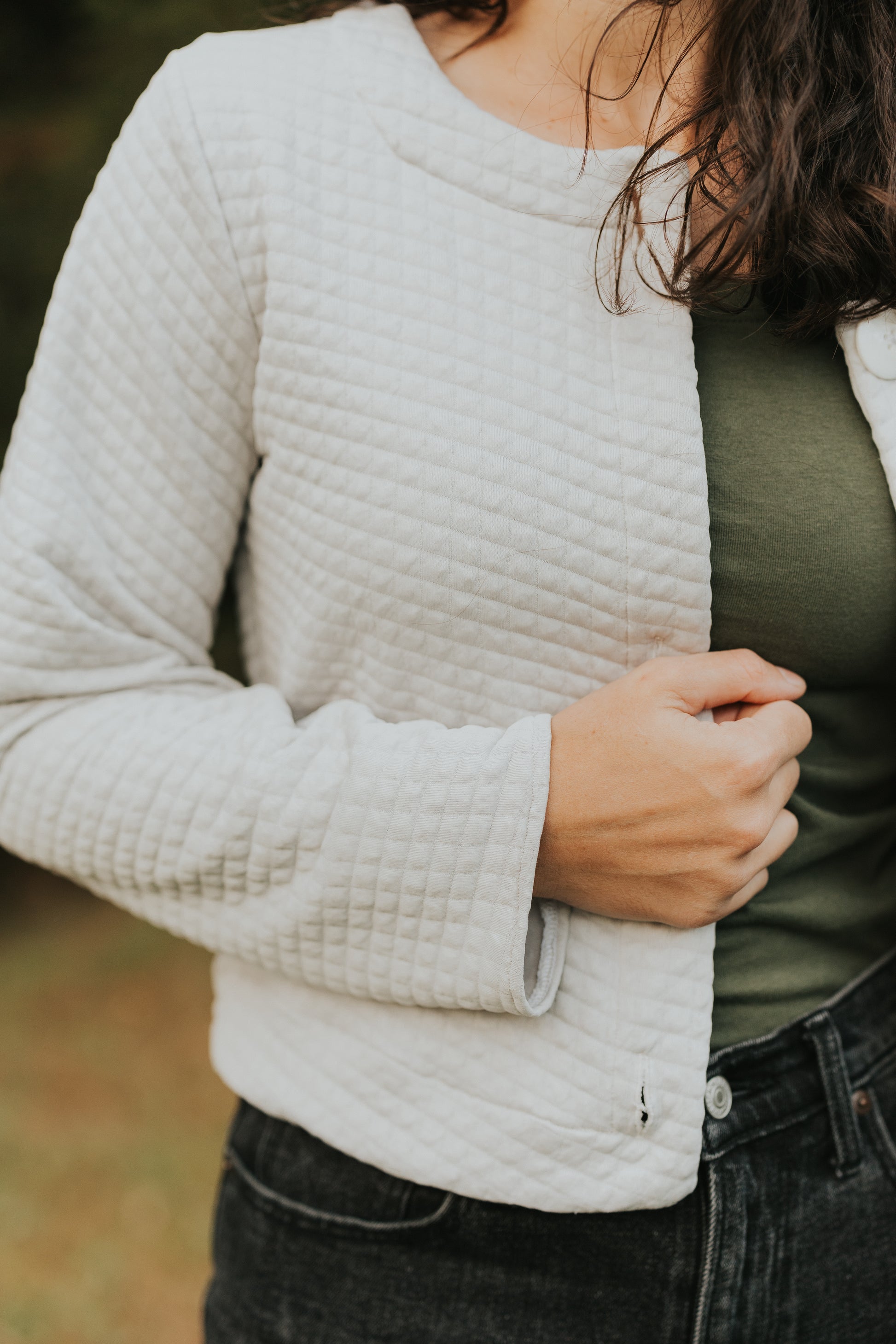 Introducing the Camille Jacket. Made with quilted poly cotton this jacket is lightweight and can be dressed up or down depending on the look you're going for.
