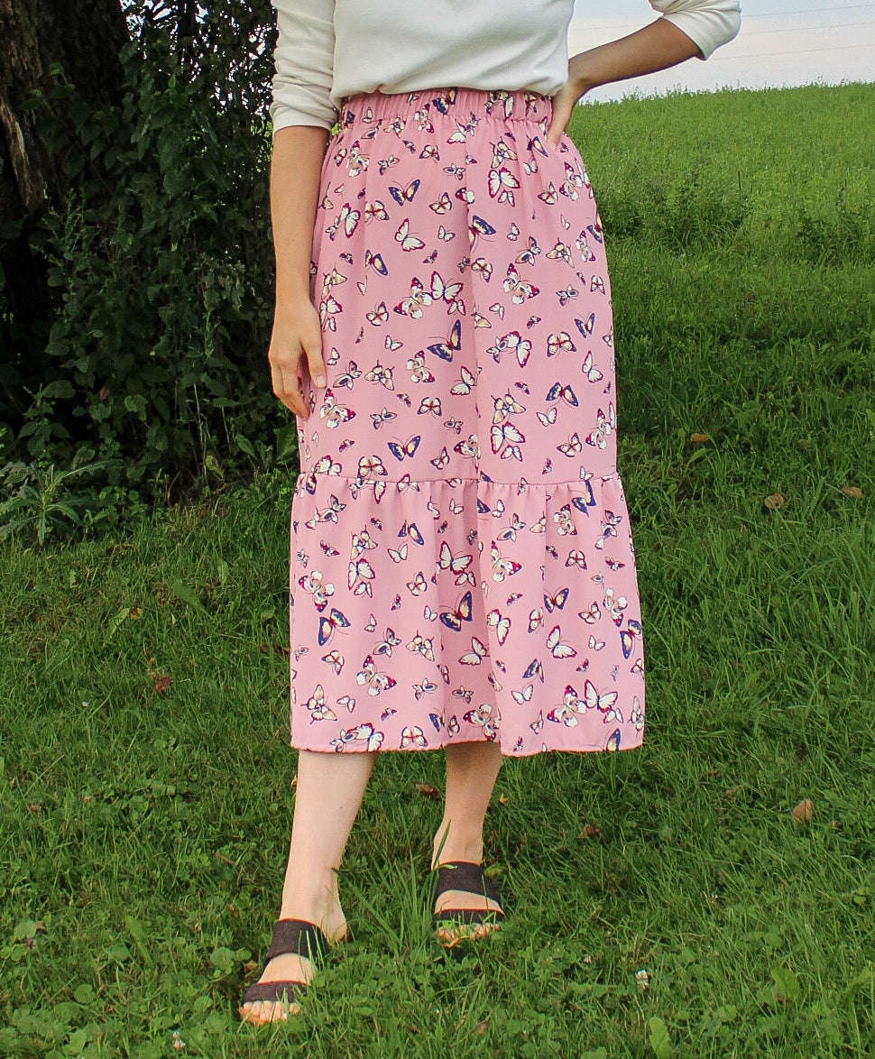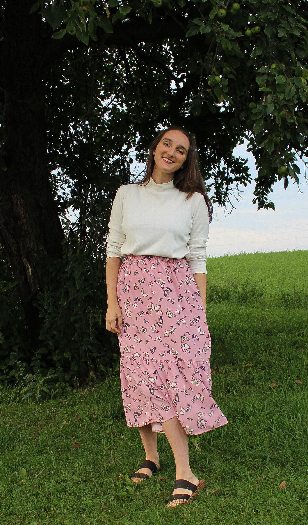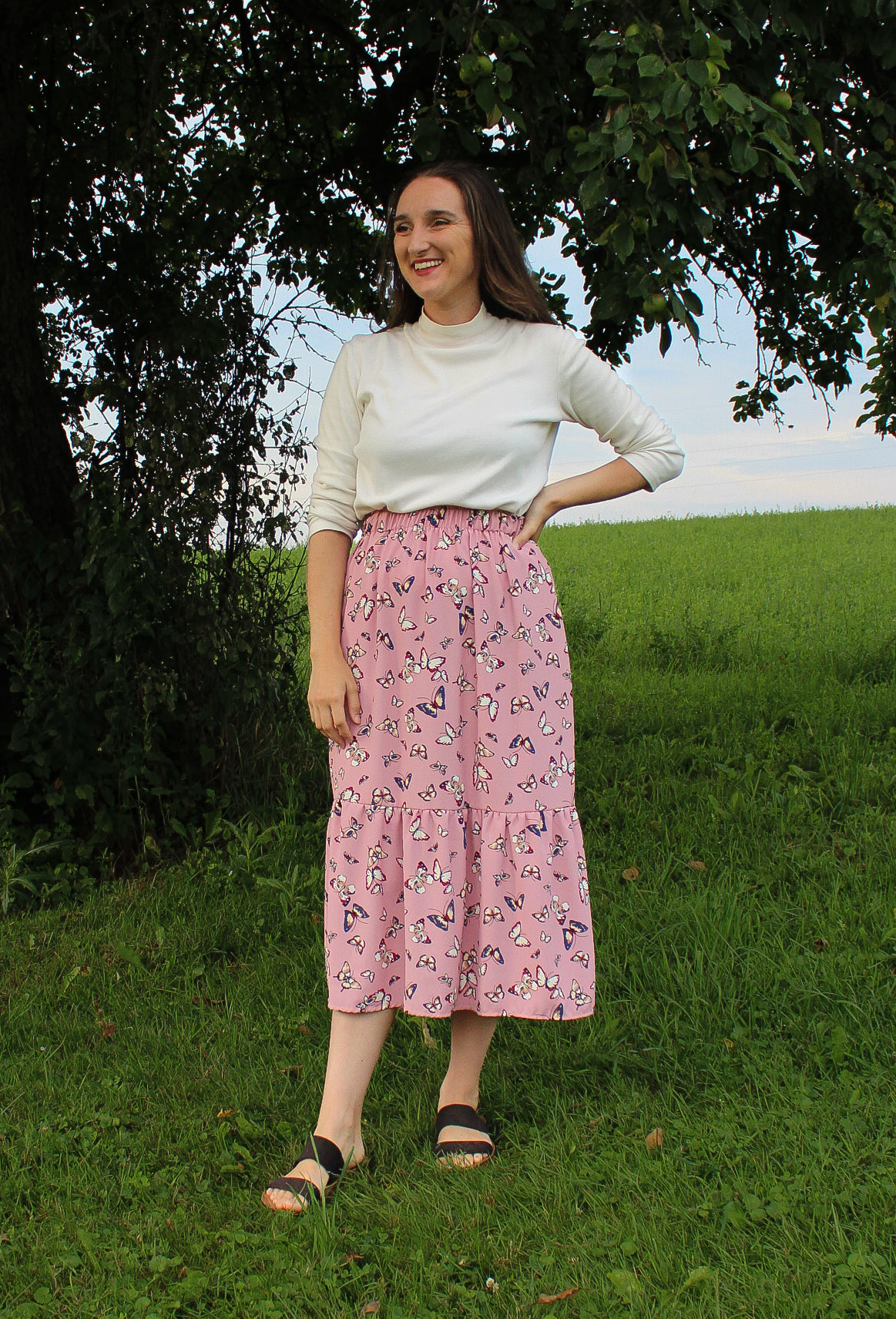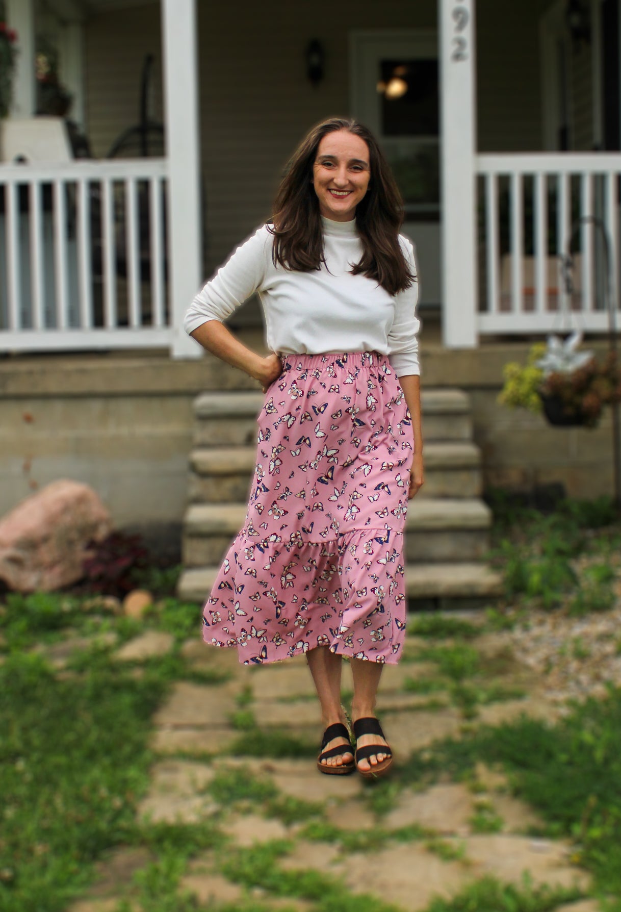 Introducing the Daisy Skirt: made from lightweight fabric for a soft, breezy feel. In a lovely butterfly print, it boasts a comfortable elastic waistband and functional pockets for all your essentials. Comfort and style in one package - you'll wear it everywhere!