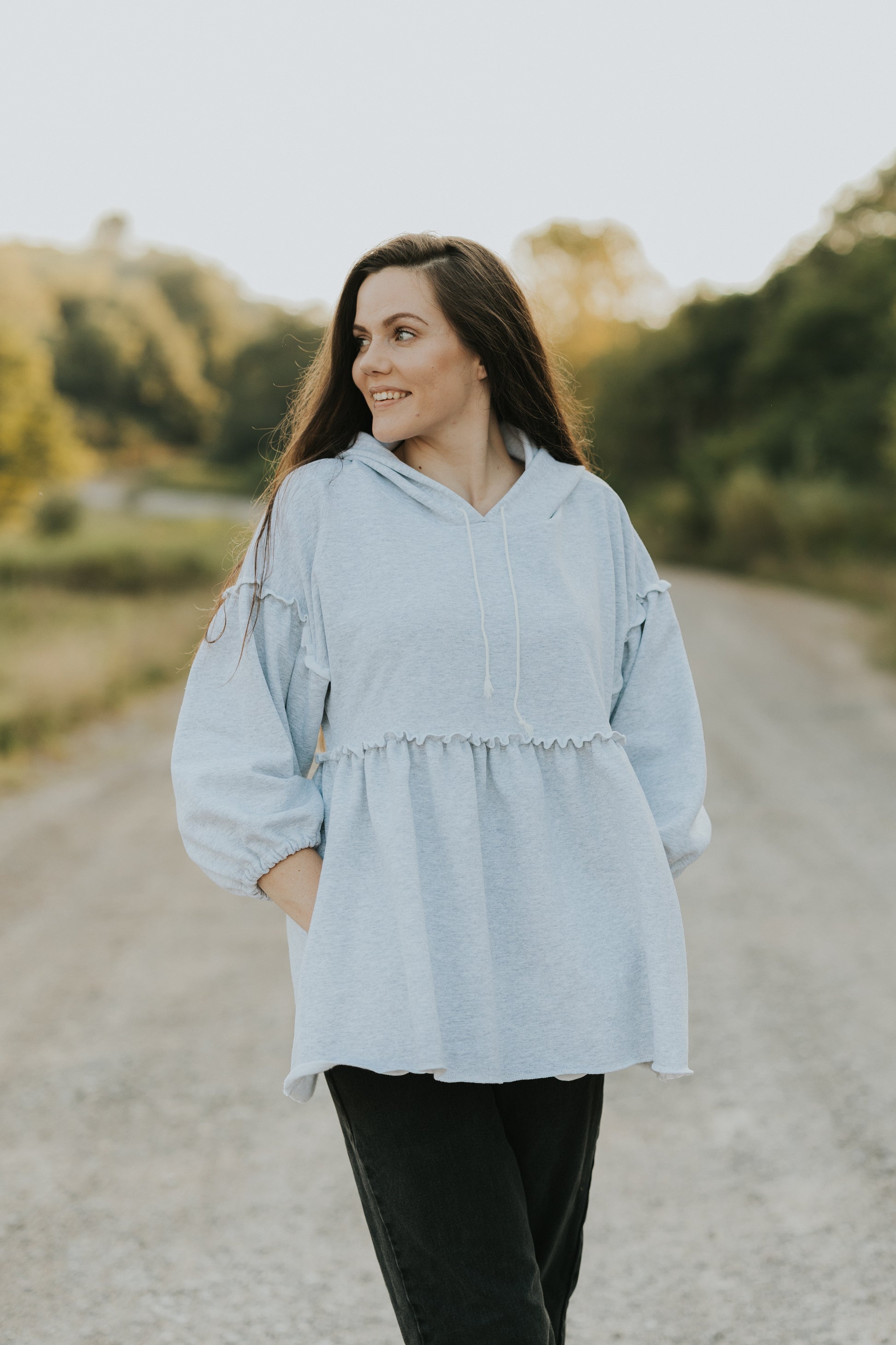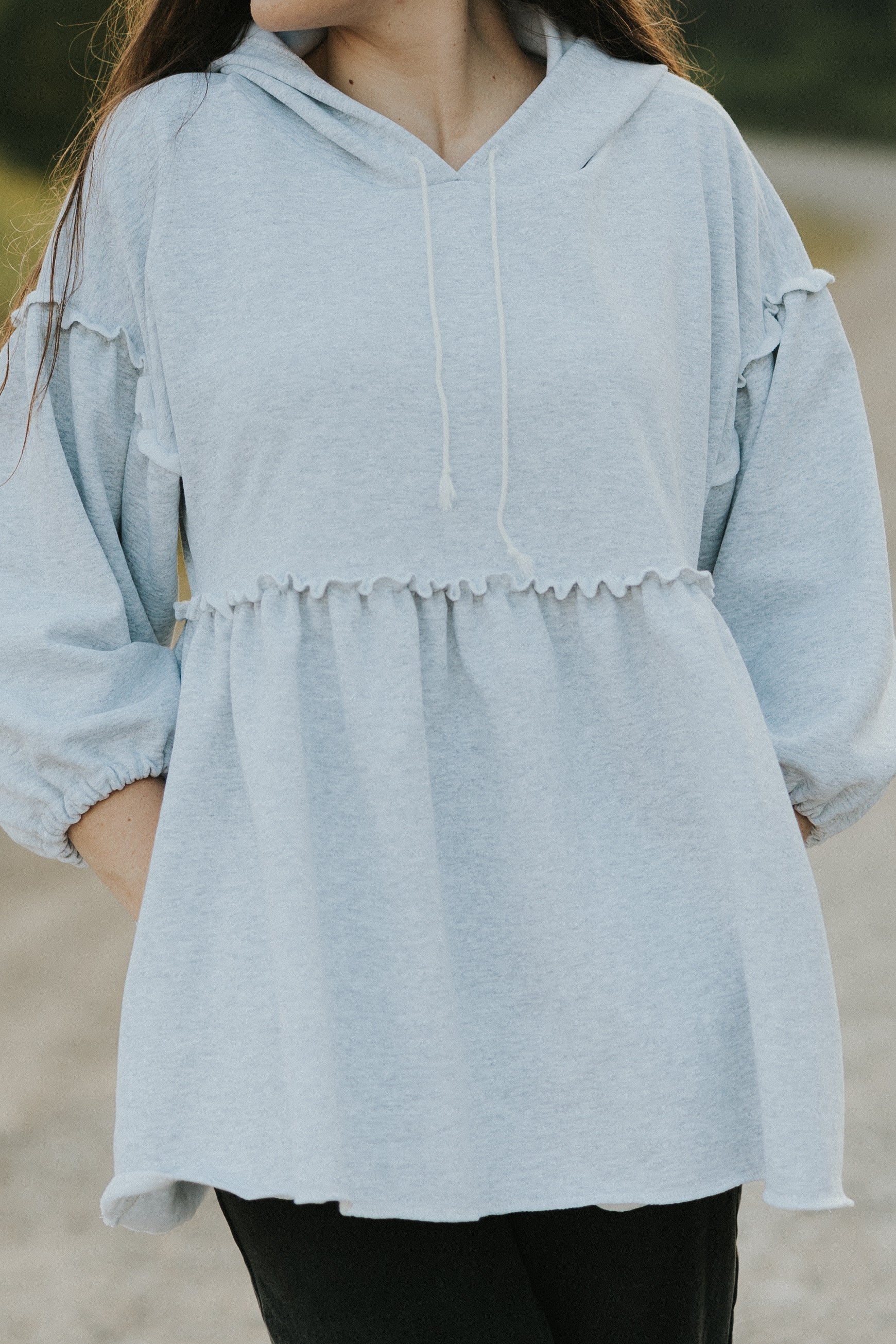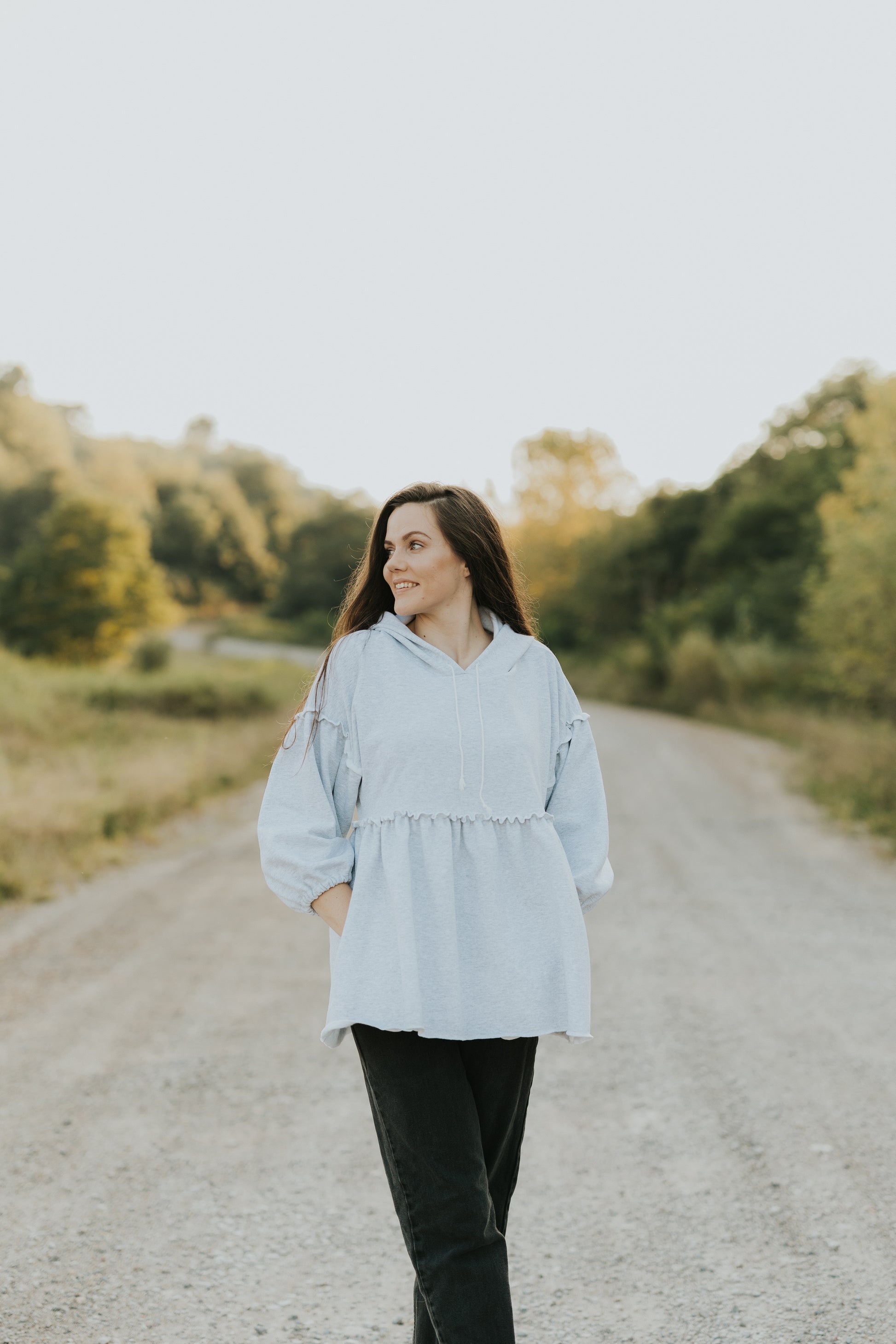 Stay cozy and stylish with the Hannah Sweatshirt. This unique and playful top features convenient pockets and a soft, comfortable fabric that will keep you warm and comfy. A must-have for any casual wardrobe!