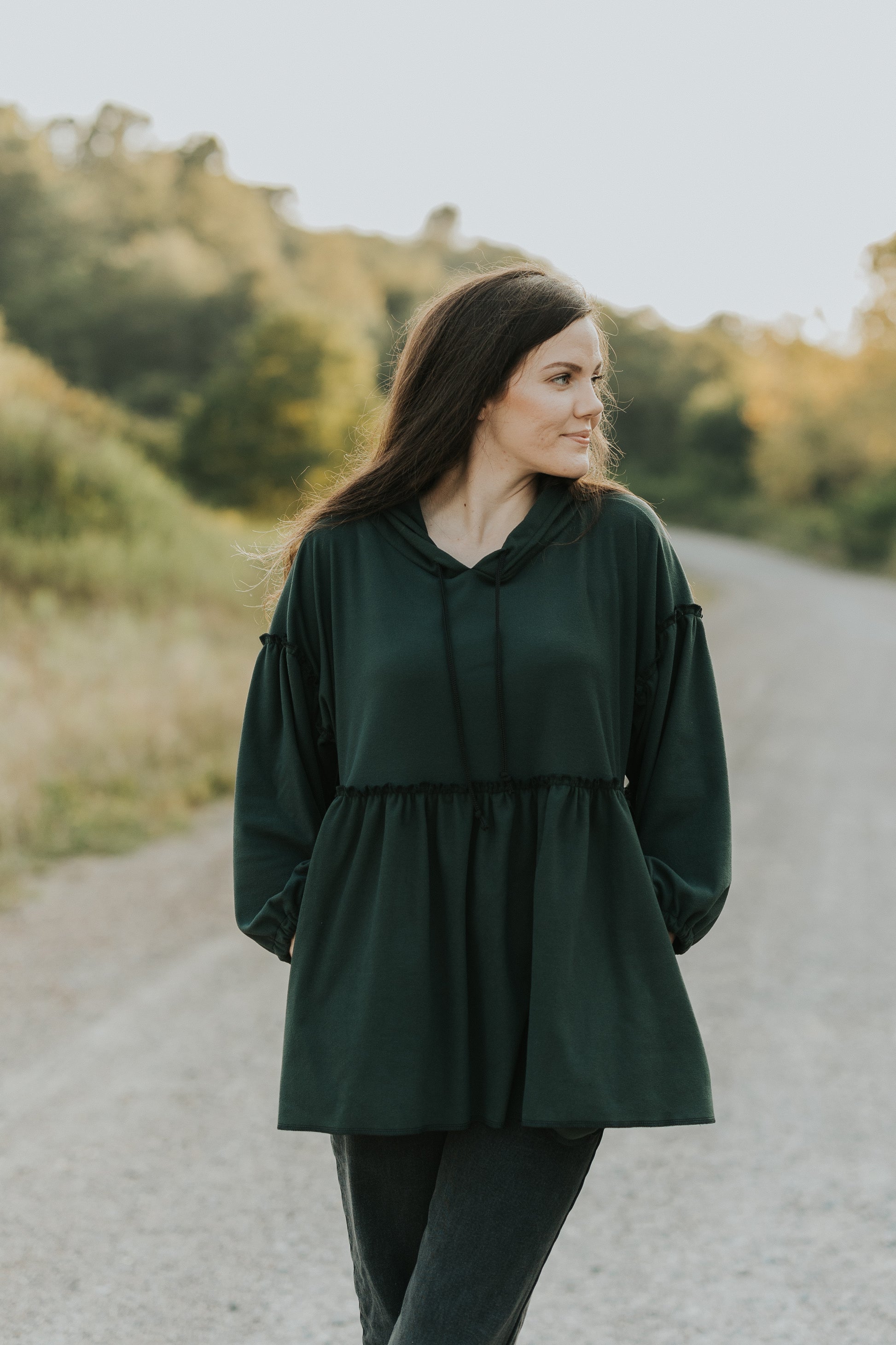 Stay cozy and stylish with the Hannah Sweatshirt. This unique and playful top features convenient pockets and a soft, comfortable fabric that will keep you warm and comfy. A must-have for any casual wardrobe!
