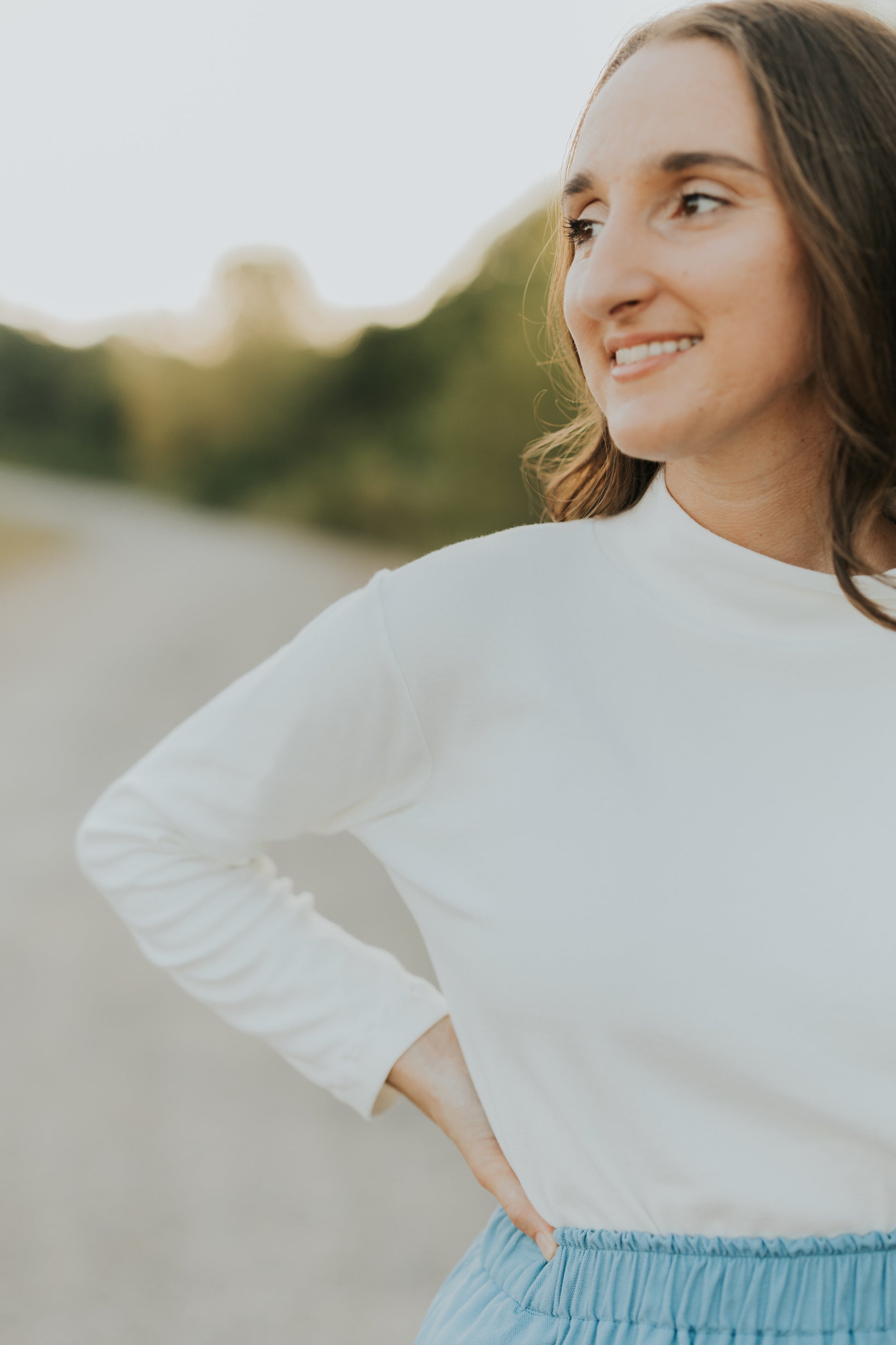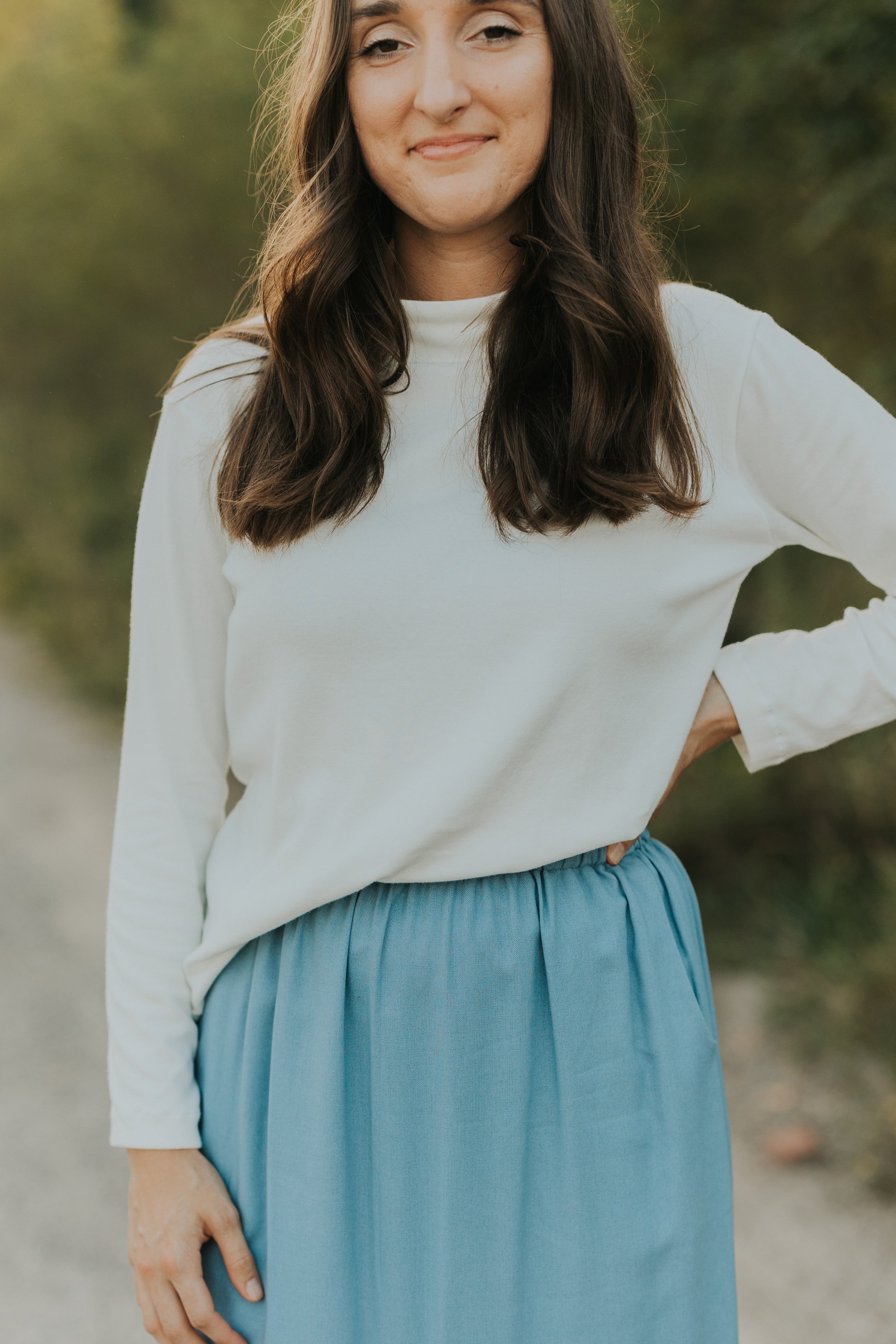 Stay cozy in our Sadie Mockneck Top, made with soft cotton and featuring long sleeves for extra warmth. Perfect for layering under the Farmhouse Romper or paired with your favorite linen pants.