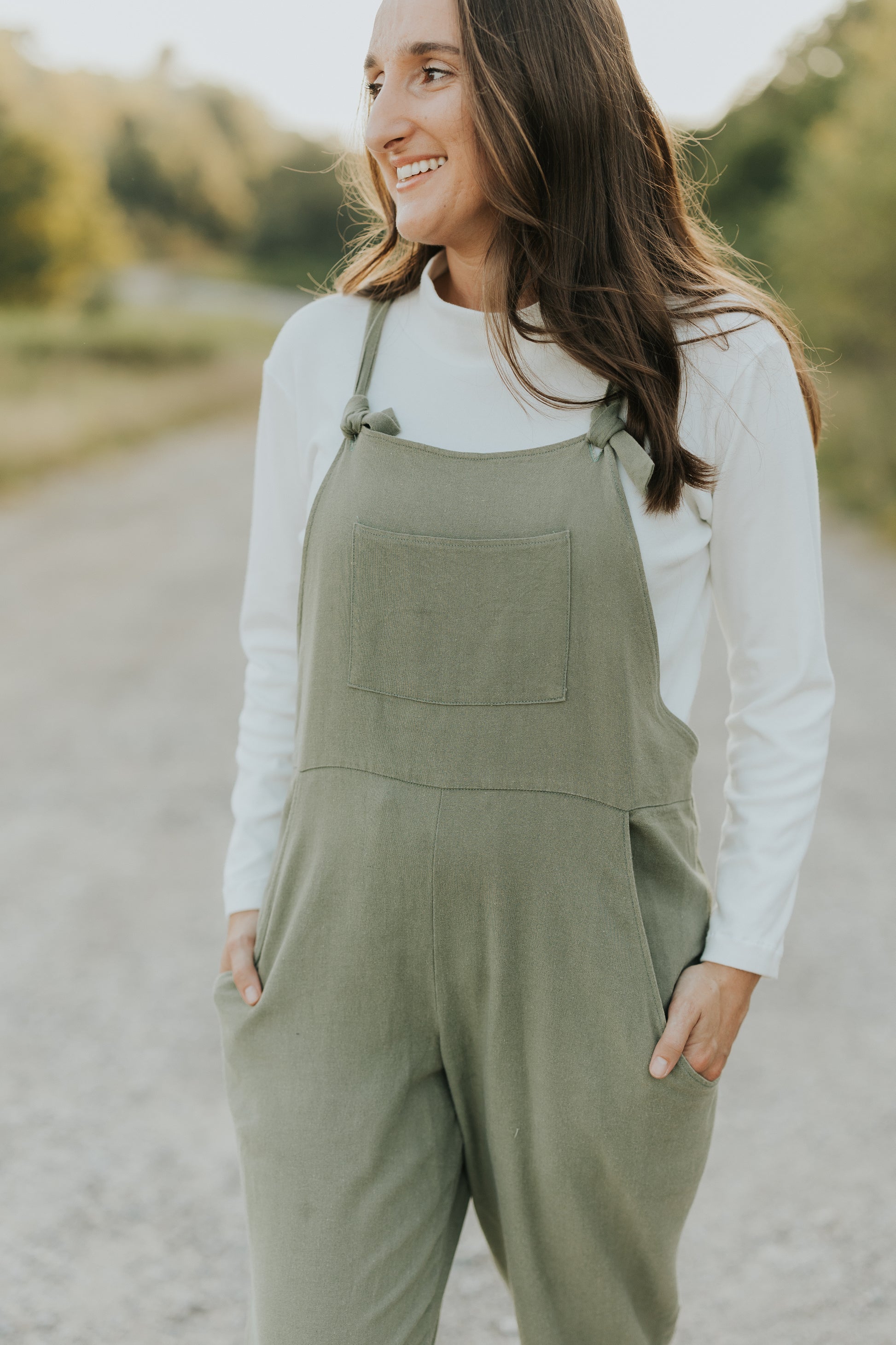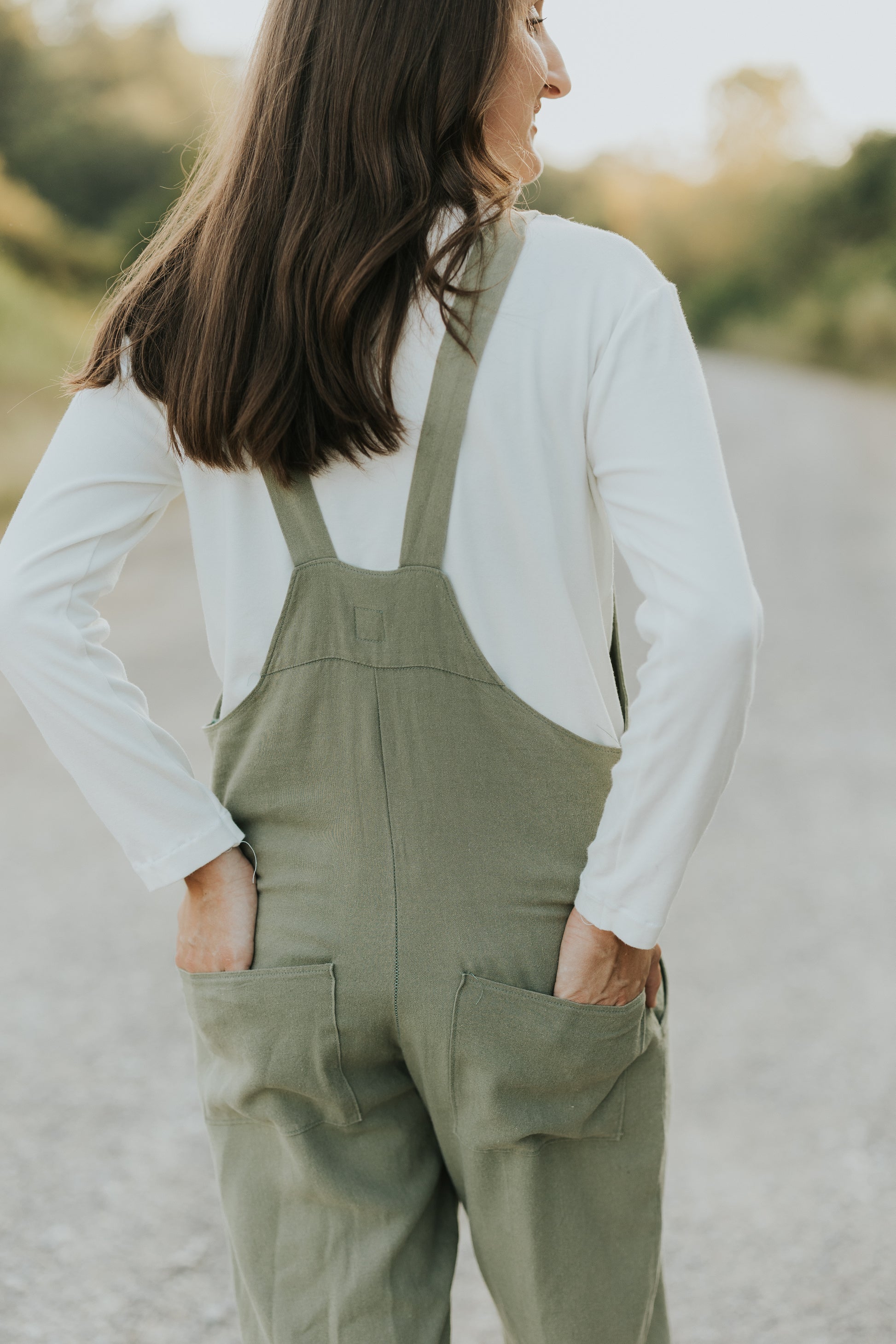 The Farmhouse Romper - the perfect blend of comfort and style. Made with linen fabric, this romper features adjustable straps and pockets for convenience. Stay cool and chic all day long. (Guaranteed to become your new favorite!)