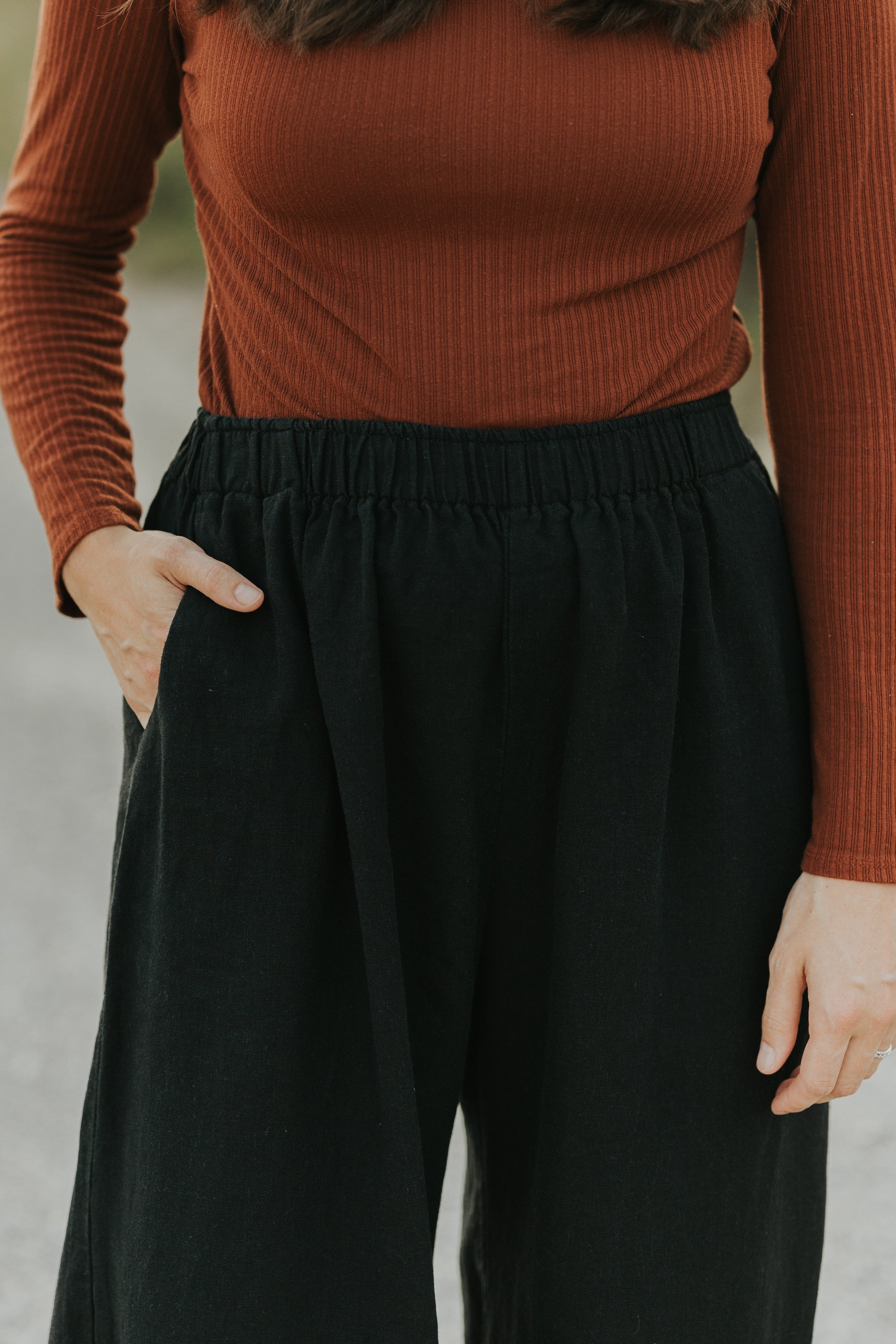Introducing our Wide Leg Arie Pants, designed for the sophisticated and exclusive individual. Crafted with a linen look and comfortable elastic waist, these high-waisted pants provide both style and comfort. With spacious pockets, these pants are both practical and elegant, making them a perfect addition to any wardrobe.