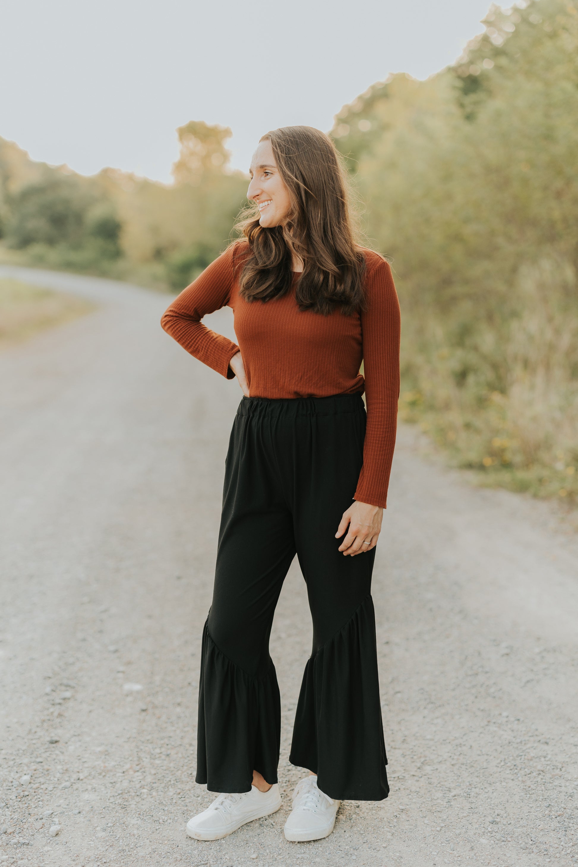 The Willow Pants - perfect for those who want to stay comfy and stylish! Made with buttery soft material, these black flowy pants have an elastic waistband and pockets for convenience. Say goodbye to uncomfortable pants and hello to the ultimate in comfort and style.
